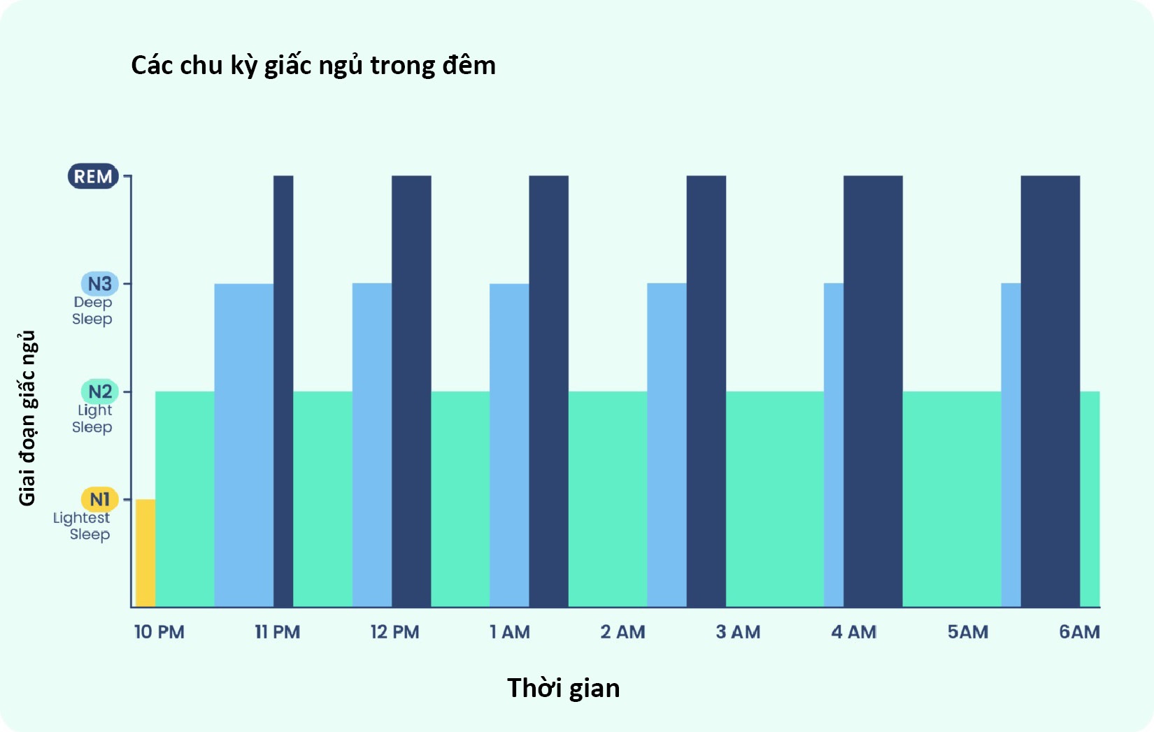 Thời lượng xác định dành cho từng giai đoạn giấc ngủ của một chu kỳ ngủ bình thường bao gồm: